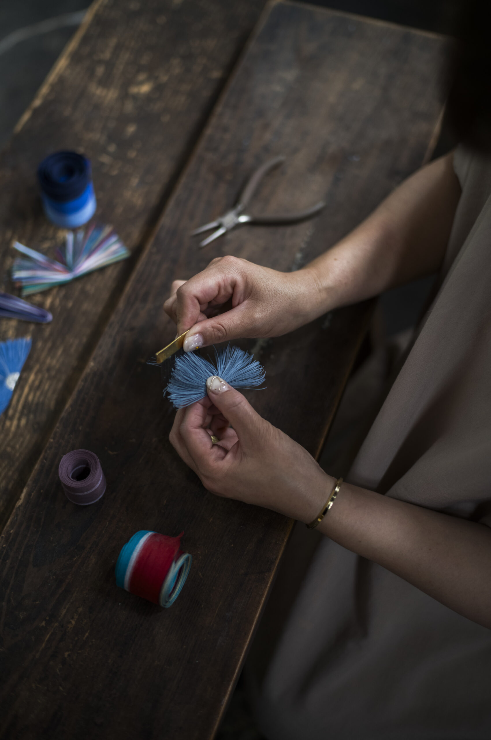 ボンボン、タッセル、扇── 手で裂き 束ね 整えて また崩して
